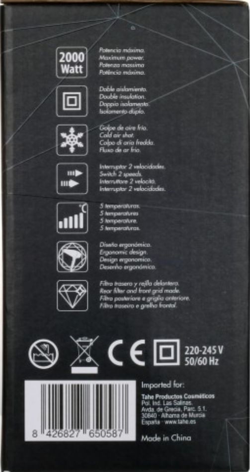 Muchos secadores compactos sacrifican potencia o versatilidad. El Tahe Compact no. Su doble aislamiento, rejilla y filtro desmontables, y su estructura sólida pero manejable lo convierten en un secador fiable, funcional y con acabados profesionales. Un básico con prestaciones de alta gama.